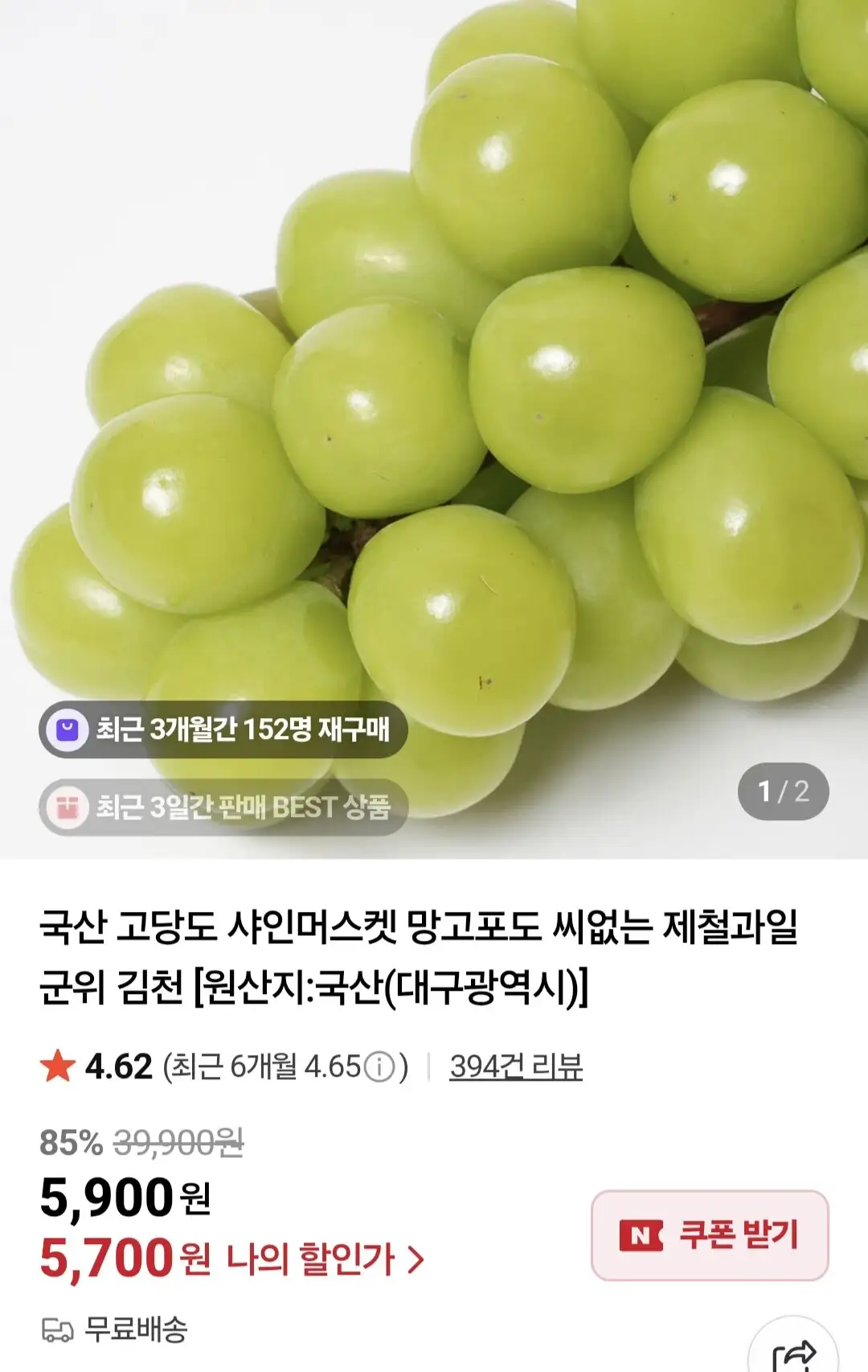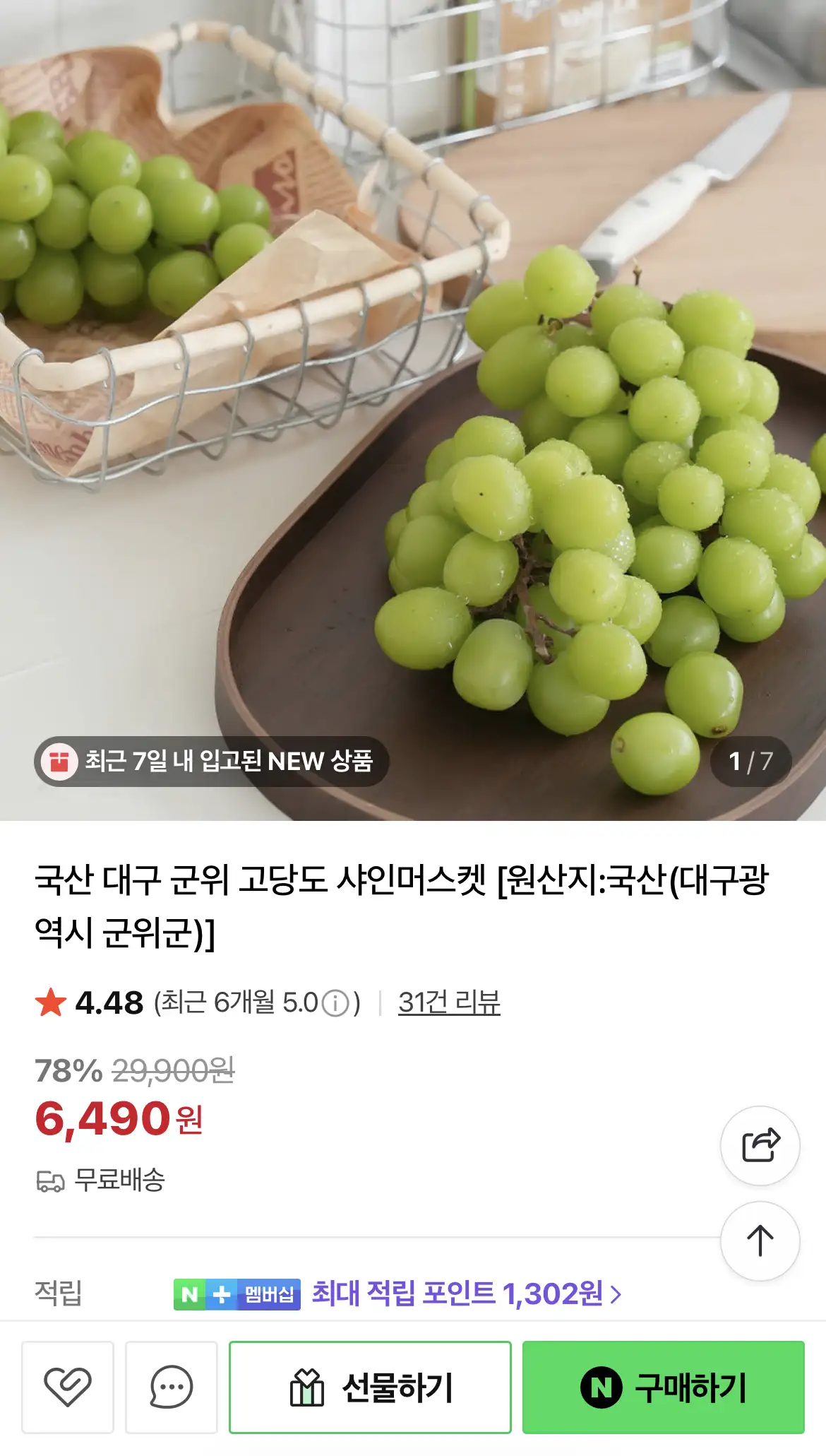 고당도 샤인머스켓 1.4kg (7,600원/무료)