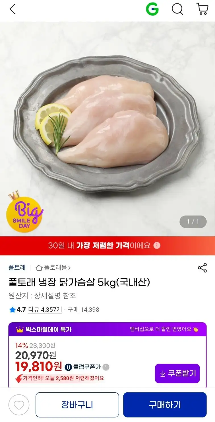 [옥션] 냉장 도리육 1kg+1kg 10,000원