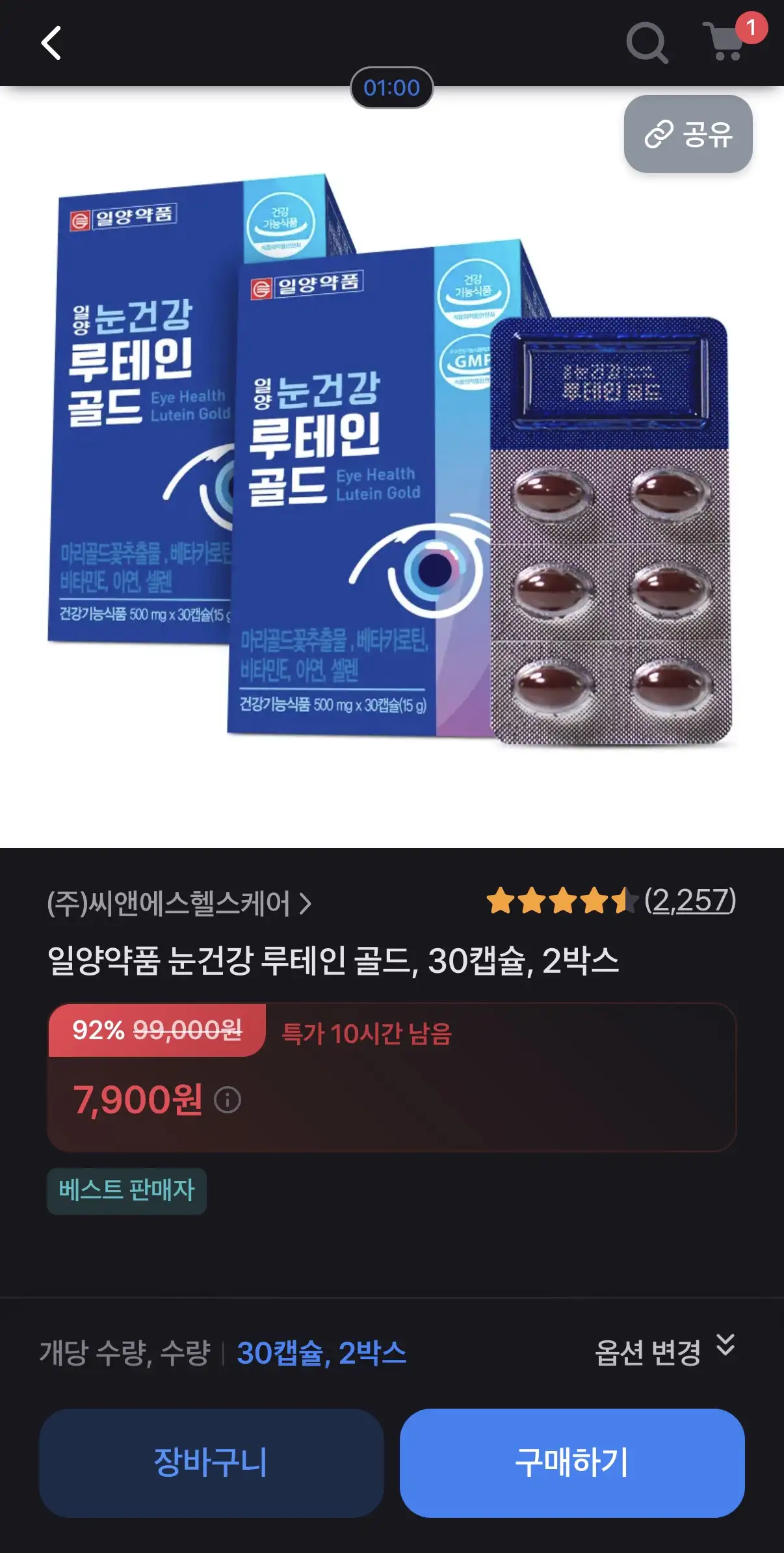 일양약품 눈건강 루테인 골드 30캡슐 2박스