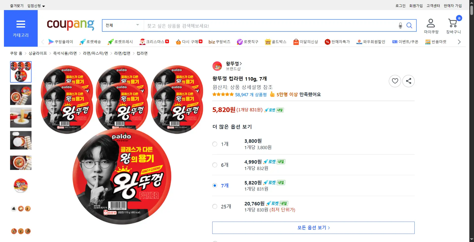 팔도 왕뚜껑 컵라면 110g 7개