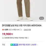 무인양품 워싱팬츠 큰사이즈 리스탁
