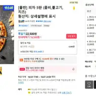 신세계푸드 올반 피자 5판 (콤비,불고기,치즈) 16500원 무배