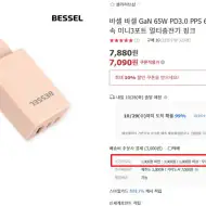 바셀 gan 65w PD 3구 충전기 7090원 무배