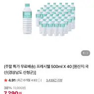 프레시웰 생수 500ml 40개 7,290원