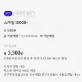 (4개월 단기간) SK망 알뜰폰 100GB 요금제 3,300원