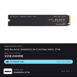 WD BLACK SN850X 2TB 대원씨티에스 AS5년 토스프라임가)