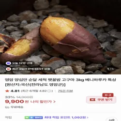 영암 세척 햇고구마 3kg 특상 (9,900원/무료)