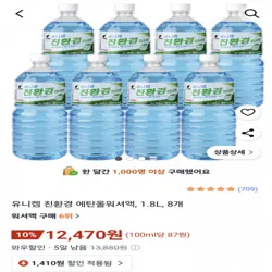 유니켐 친환경 에탄올 워셔액 1.8L,8개