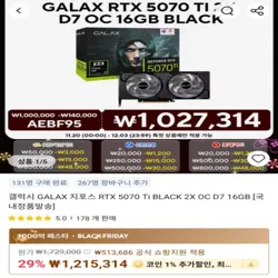 갤럭시 GALAX 지포스 RTX 5070 Ti BLACK 2X OC D7 16GB