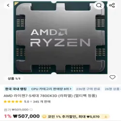 AMD 라이젠7-5세대 7800X3D (멀티팩 정품)