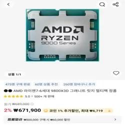 AMD 라이젠 9800X3D 멀티팩 정품