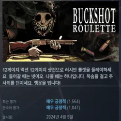 스팀 - 벅샷 룰렛(Buckshot Roulette) 40% 할인중