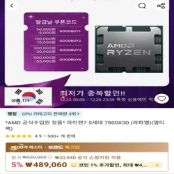 AMD 라이젠 7800X3D 외 9800X3D (멀티팩 정품)