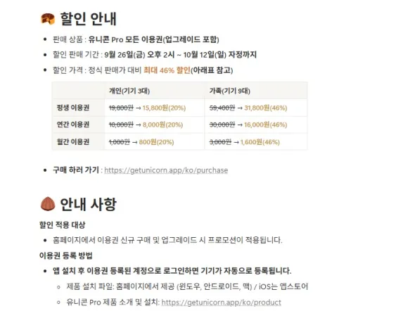 유니콘 Pro 이용권 할인 가격다양