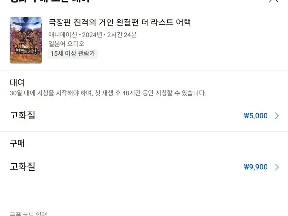 극장판 진격의 거인 완결편 더 라스트 어택 소장 9,900원