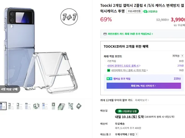 투키 Z플립 4/5/6 투명케이스 (1+1 3,990원)