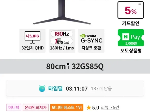 LG 32GS85Q QHD나노IPS게이밍모니터(429,000원...