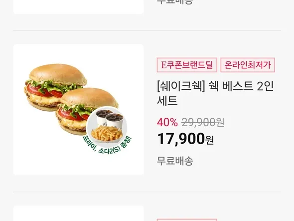 쉐이크쉑 버거 1인세트&2인세트 40%할인/11,700원~