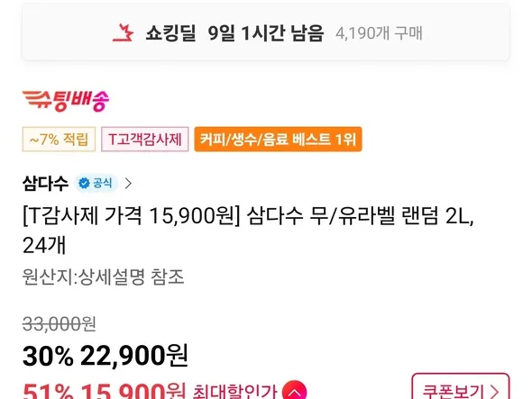 삼다수 2L, 24개 (skt 사용자만 15900/무배)