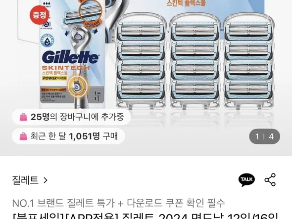 질레트 2024 스킨텍 면도날 12입 + 면도기 증정 38,6...
