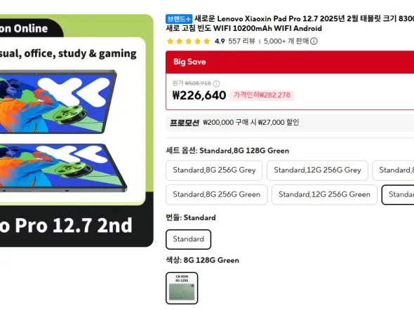 레노버 샤오신패드 프로 2025 12.7 내수롬 19만8천원(13...