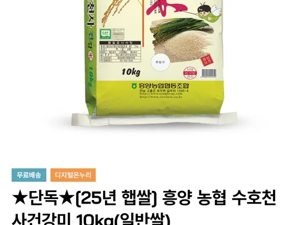 25년 햅쌀 수호천사건강미 상등급 10kg (25,250원)