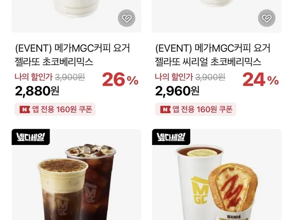 메가MGC커피 (HOT)아메리카노 1,180원 등 할인