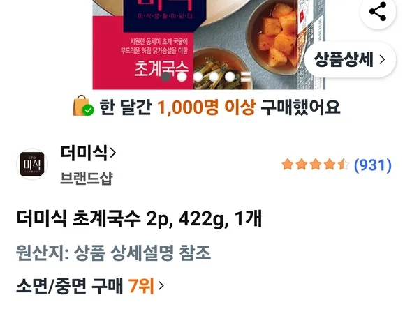 더미식 초계국수 2p, 422g, 1개 (2,680원)