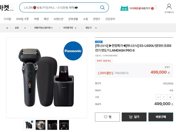 파나소닉 ES-LV97 전기면도기/ 182,388원
