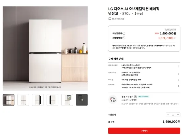 LG 디오스 AI 오브제컬렉션 냉장고 870L/1,571,70...