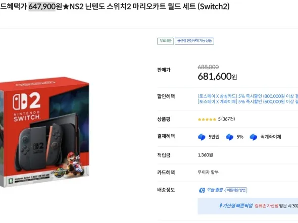 닌텐도 스위치2+삼성마이크로SD익스프레스카드(699,80...