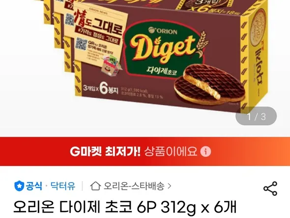 오리온 다이제 초코 6P 312g x 6개 / 15400원