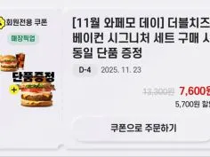 카톡플친 클래식치즈버거 38% 할인 쿠폰 (11/19~25)