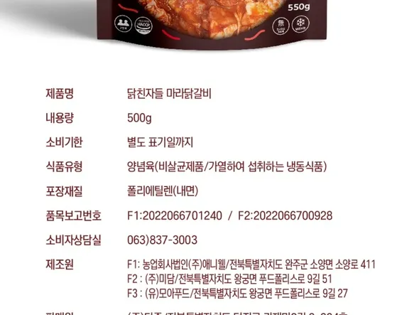 통마늘 닭갈비 550g+얼얼 마라 닭갈비 500g / 7000...