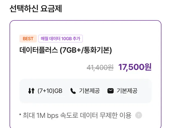 7GB+1Mbps 월 6,000원 (7개월) 요금제 외 다수