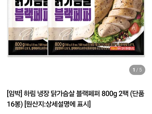 하림 냉장 닭가슴살 블랙페퍼 800g 2팩 임박 (15,870...