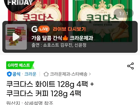 (임박)쿠크다스 화이트 & 커피 128g 각 4팩 / 1095...