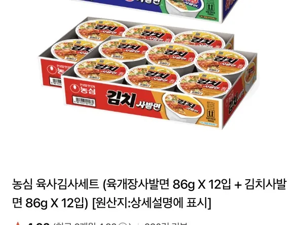 육개장사발면 12입+김치사발면 12입 (15,730원/무료)