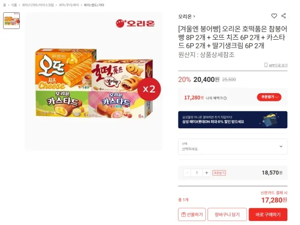 참붕어빵+오뜨치즈+카스타드+딸기생크림 2개 (17,280원 /...