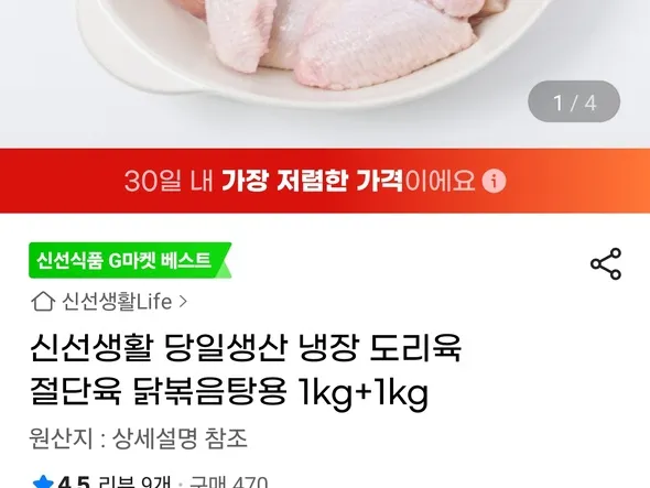 신선생활 냉장 도리육 절단육 닭볶음탕용 1kg+1kg / 10...