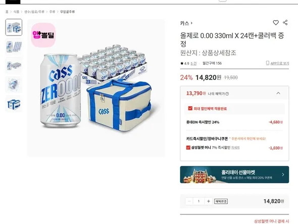 카스 0.00 올제로 24캔 +쿨러백 (13,790)