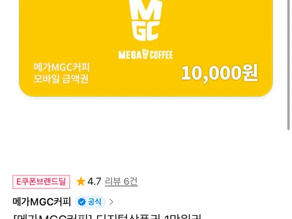 메가커피 1만원 상품권 (8,370원)