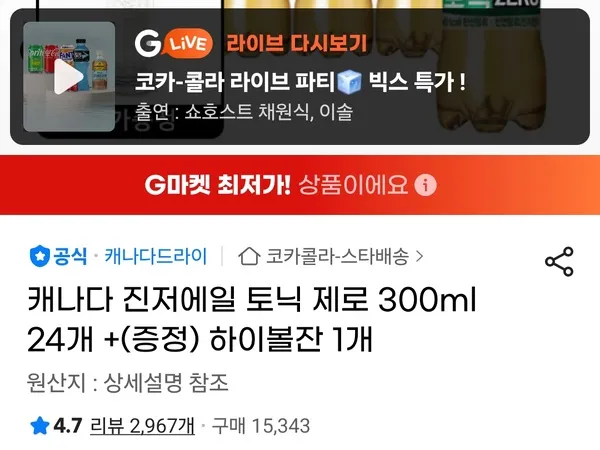 진저에일 토닉 제로 300ml 24개 + 하이볼잔 1개 / 1...