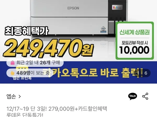 엡손 L6490 잉크젯 팩스 복합기 잉크포함 (259,470원...