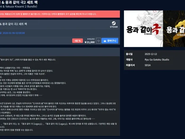 용과 같이 극 & 용과 같이 극2 세트 팩 21000원