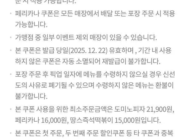 페리카나 6천원 할인 외 (12/22)
