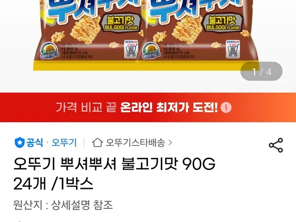 오뚜기 뿌셔뿌셔 불고기맛 90G 24개 / 12780원