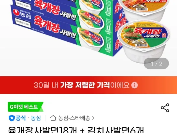 농심 육개장 사발면 18개 + 김치 사발면 6개 (13,900...