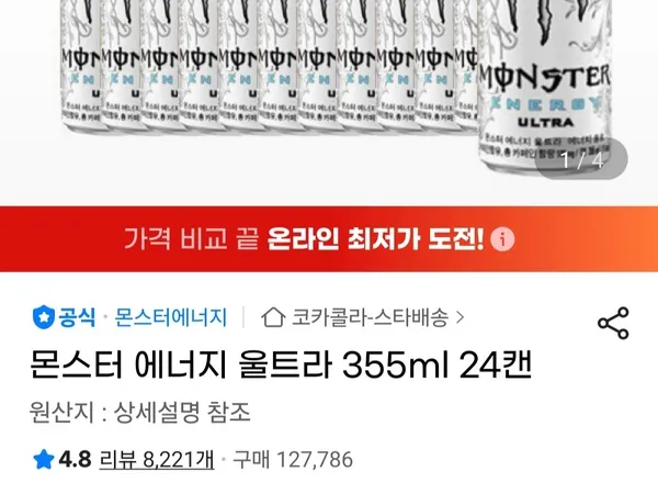 몬스터 에너지 울트라 355ml 24캔 (24,630원/무료)