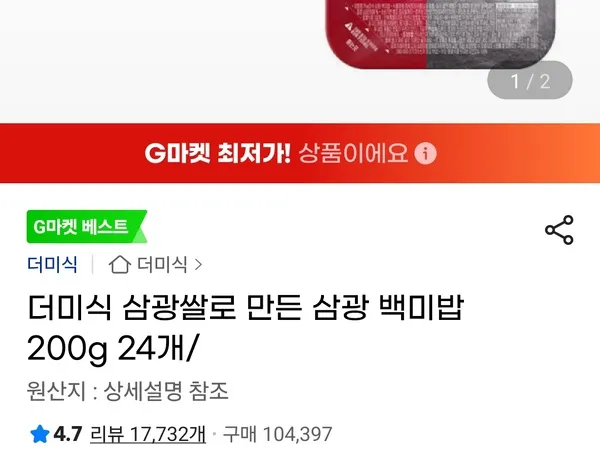 더미식 삼광쌀로 만든 삼광 백미밥 200g 24개 / 1820...